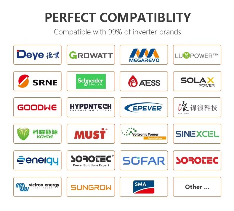 Deye, Growatt, GoodWe, ZZPower, Solis, Sinexcel, SRNE, Schneider Electric, Megarevo, AISWEI, SMA, Luxpower, Victron Energy, Afore, Hoymiles, INVT, Sofar, OutBack Power, SolaX Power, tbbpower, Sacolar, Sunsynk, Sosen, SMD Solar, Must, SOROTEC, Sunman, Voltronic Power, SAJ, and more. - High-Voltage System Compatibility (100–1500V)